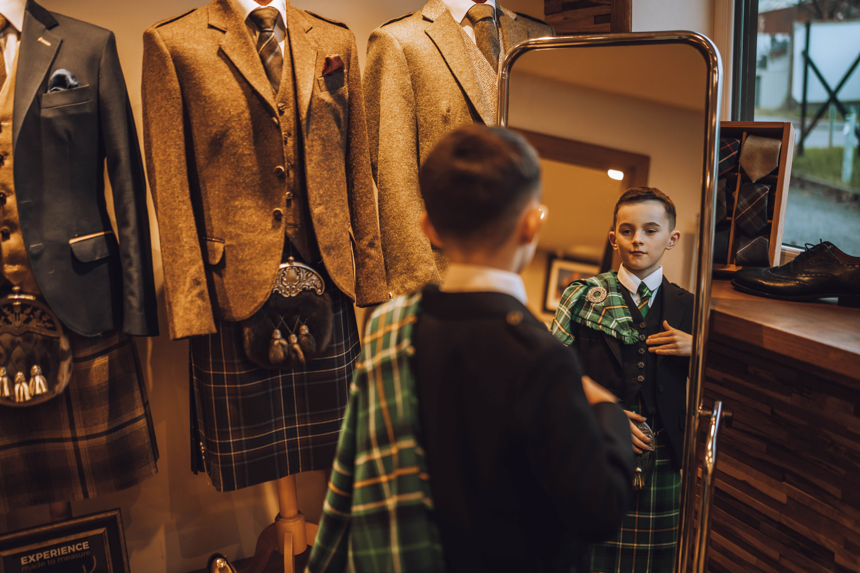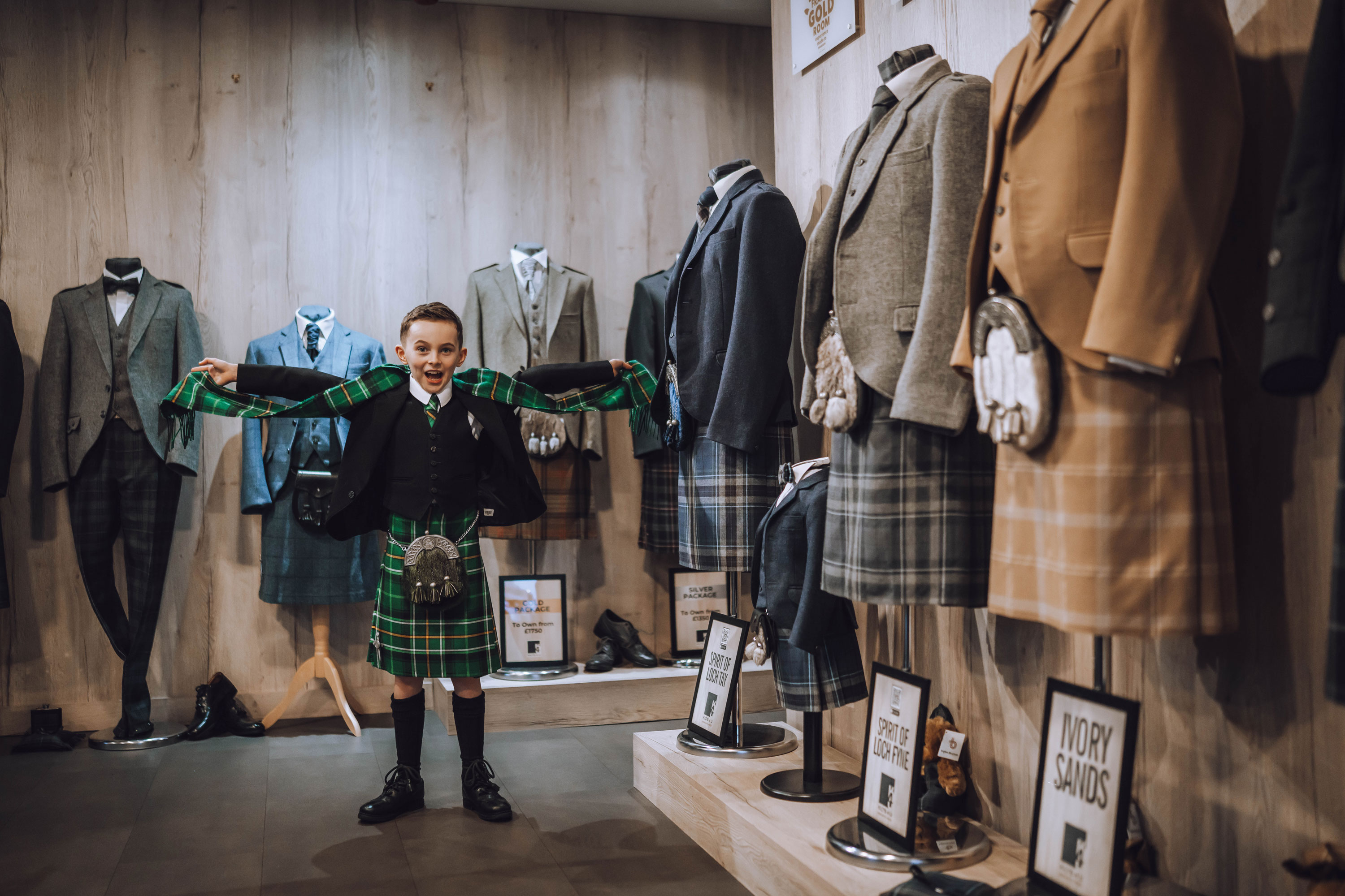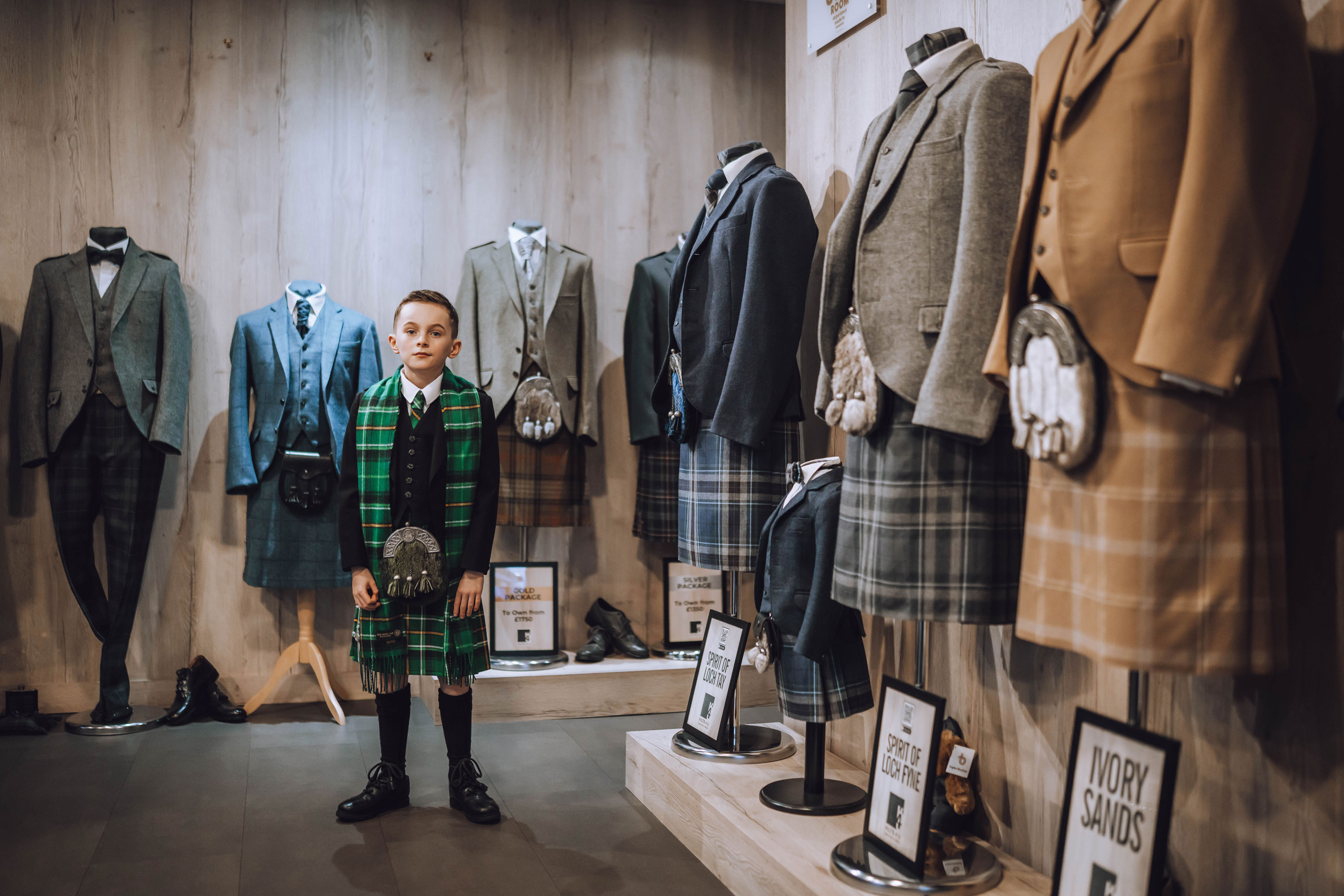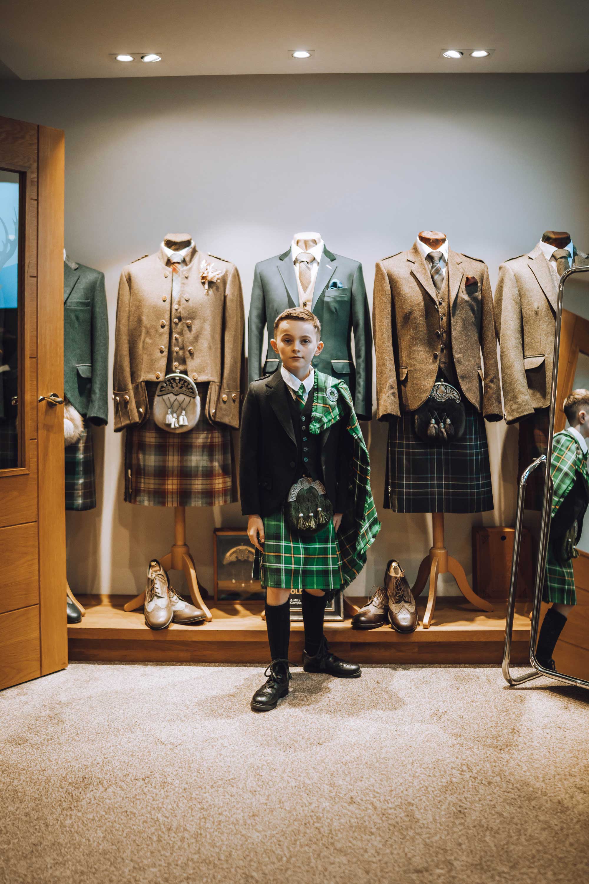 As a multi-award winning provider of bespoke and hire kilts, we ensure expert fittings, quality garments, and a personalised experience so your son looks his best.