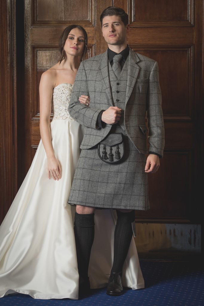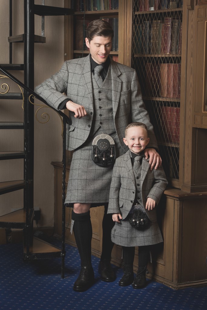 The Exclusive Cairngorm Slate tartan kilt outfit is available either to own as a Grooms bespoke made to measure outfit with matching accessories and also available to hire.