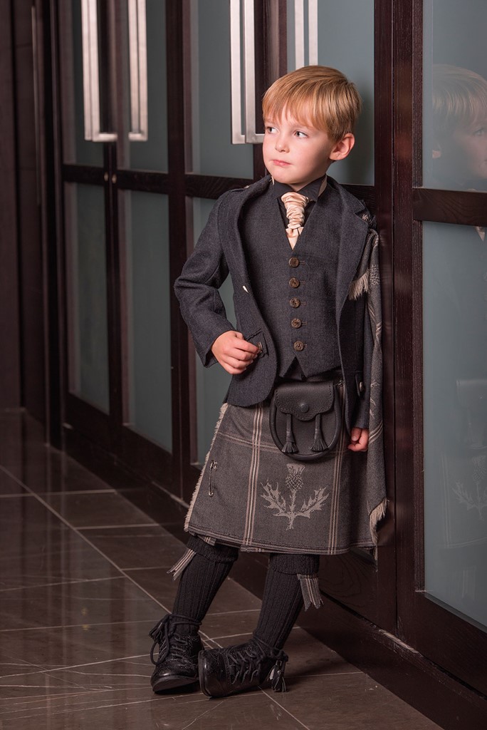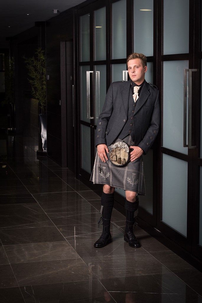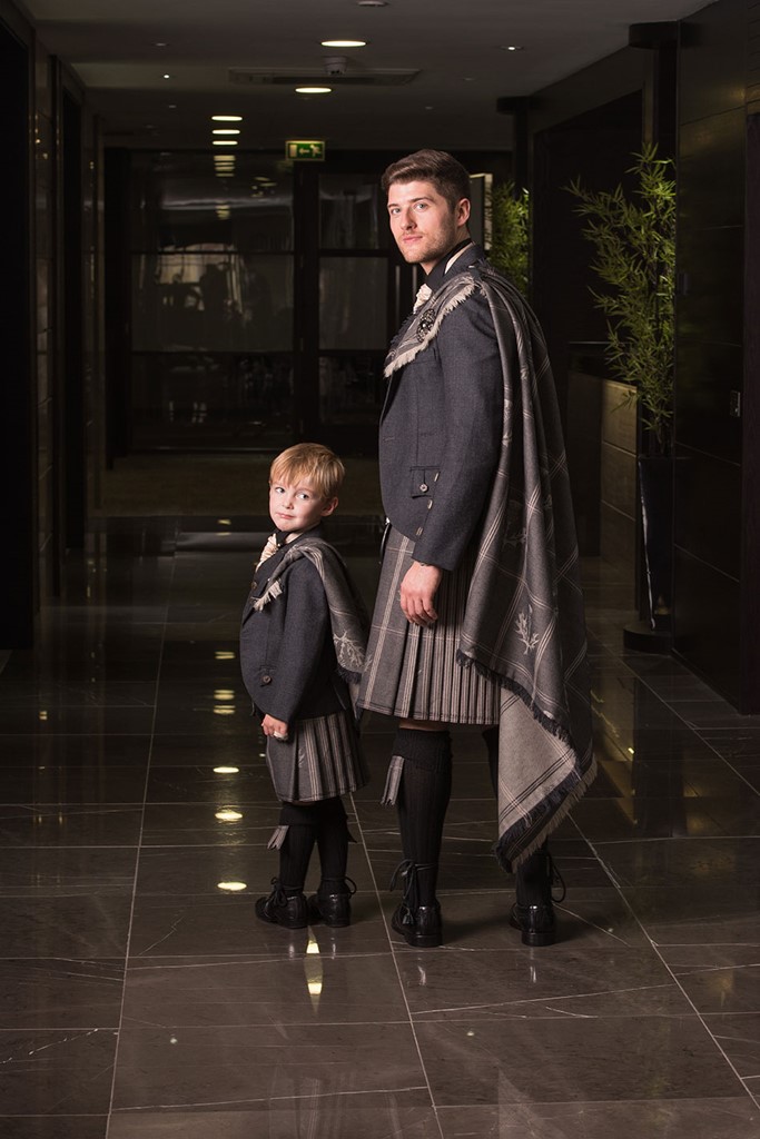 Our exclusive Eternal Thistle tartan kilt outfit is available either to own as a Grooms bespoke made to measure outfit with matching accessories and also available to hire.