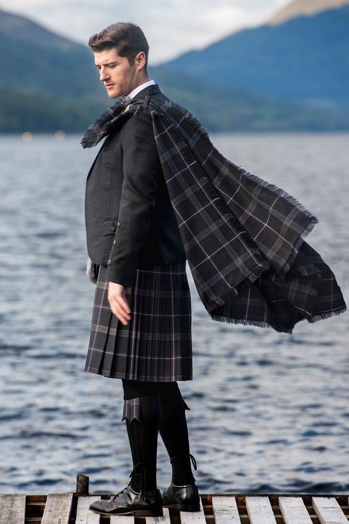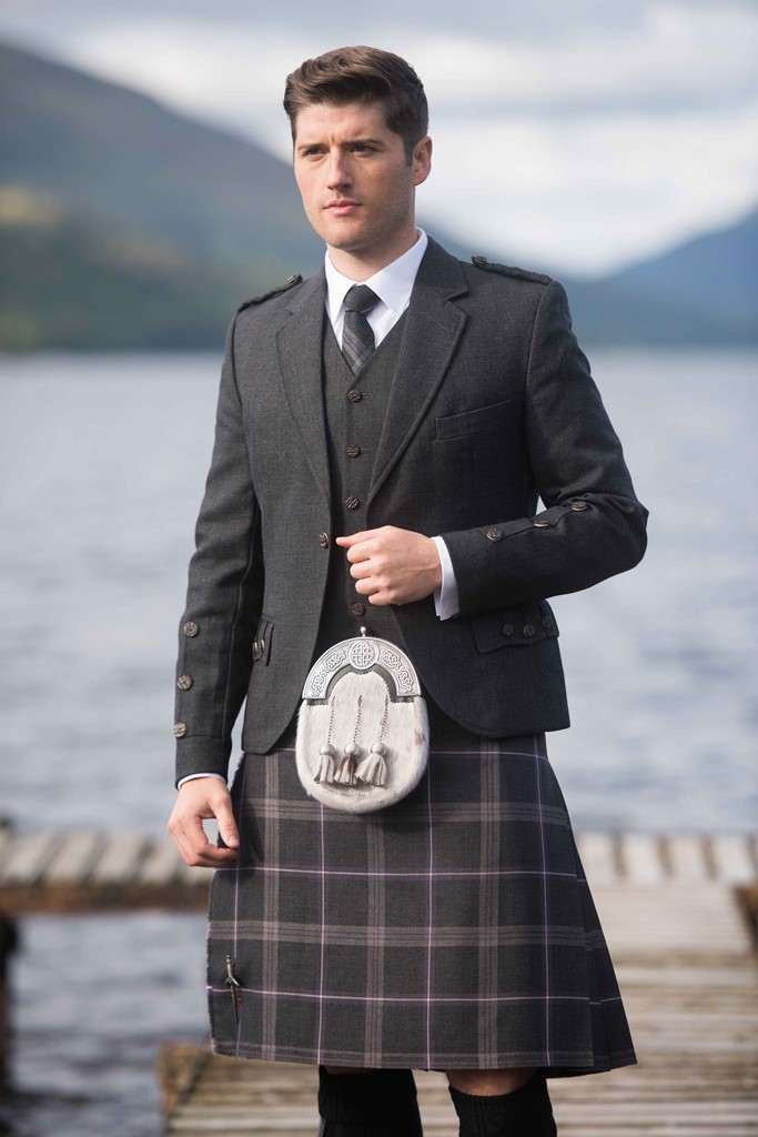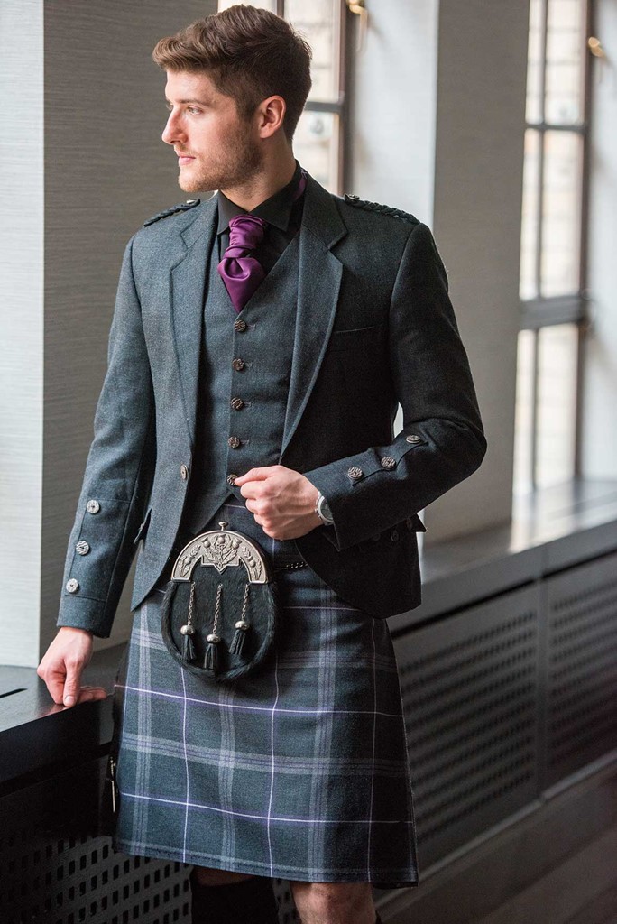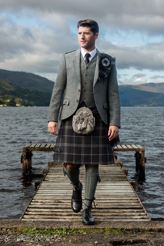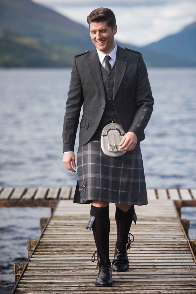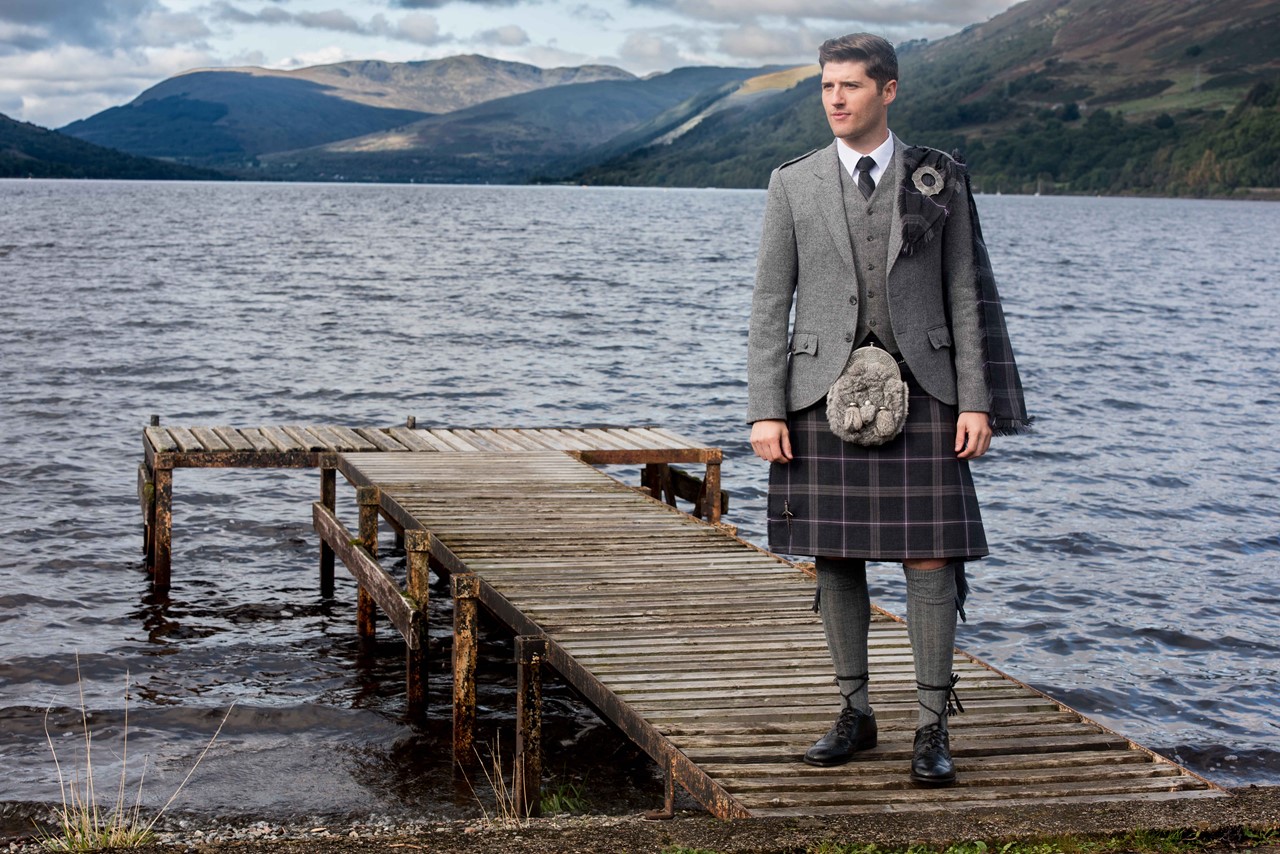 The exclusive Spirit of Loch Earn tartan kilt outfit is available either to own as a Grooms bespoke made to measure outfit with matching accessories and also available to hire.