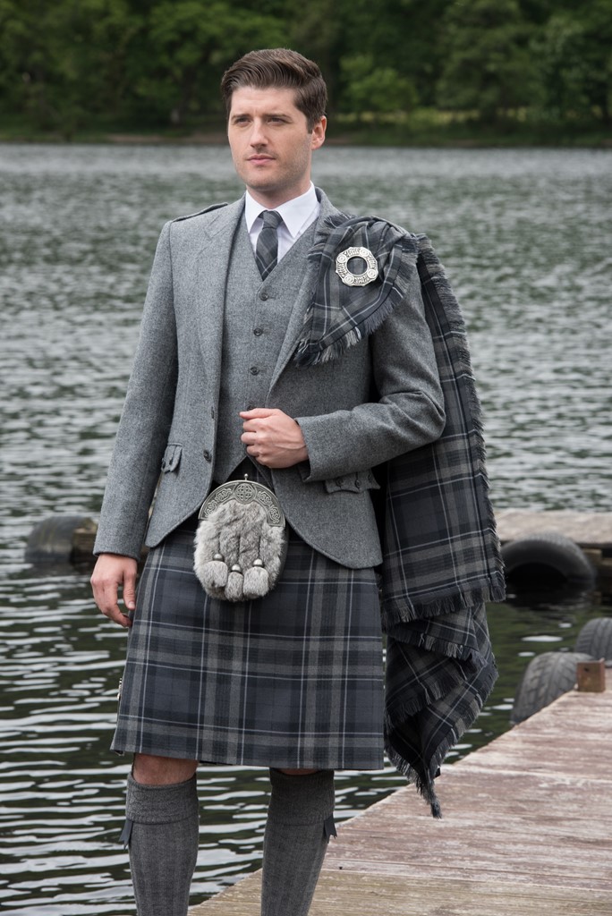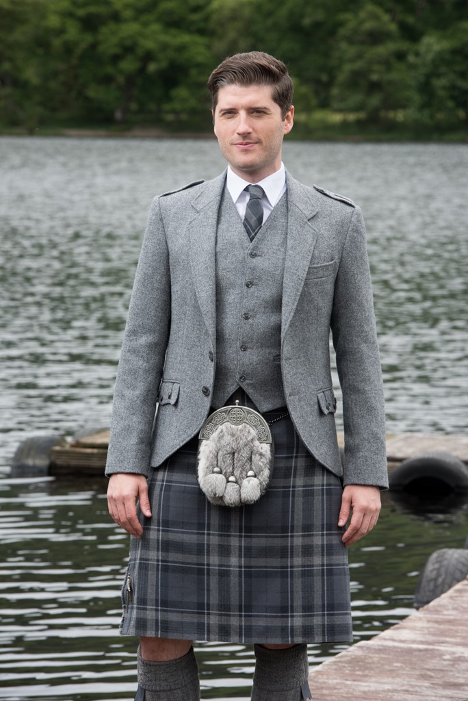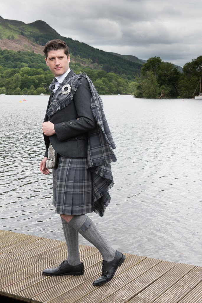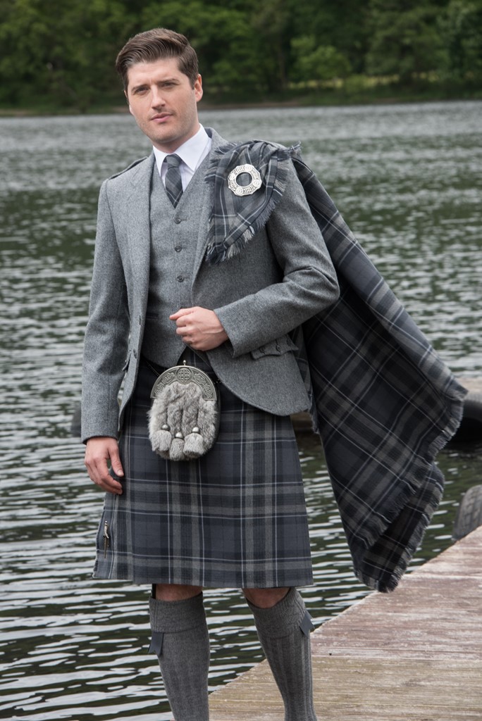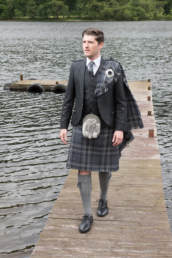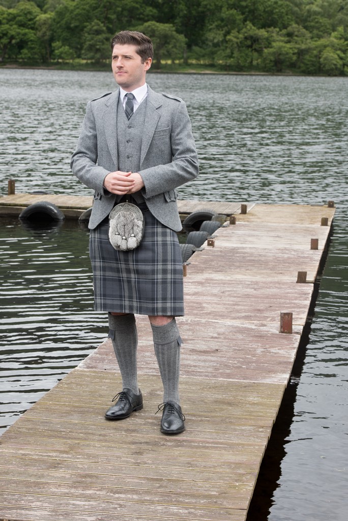 The exclusive Spirit of Loch Fyne tartan kilt outfit is available either to own as a Grooms bespoke made to measure outfit with matching accessories and also available to hire.