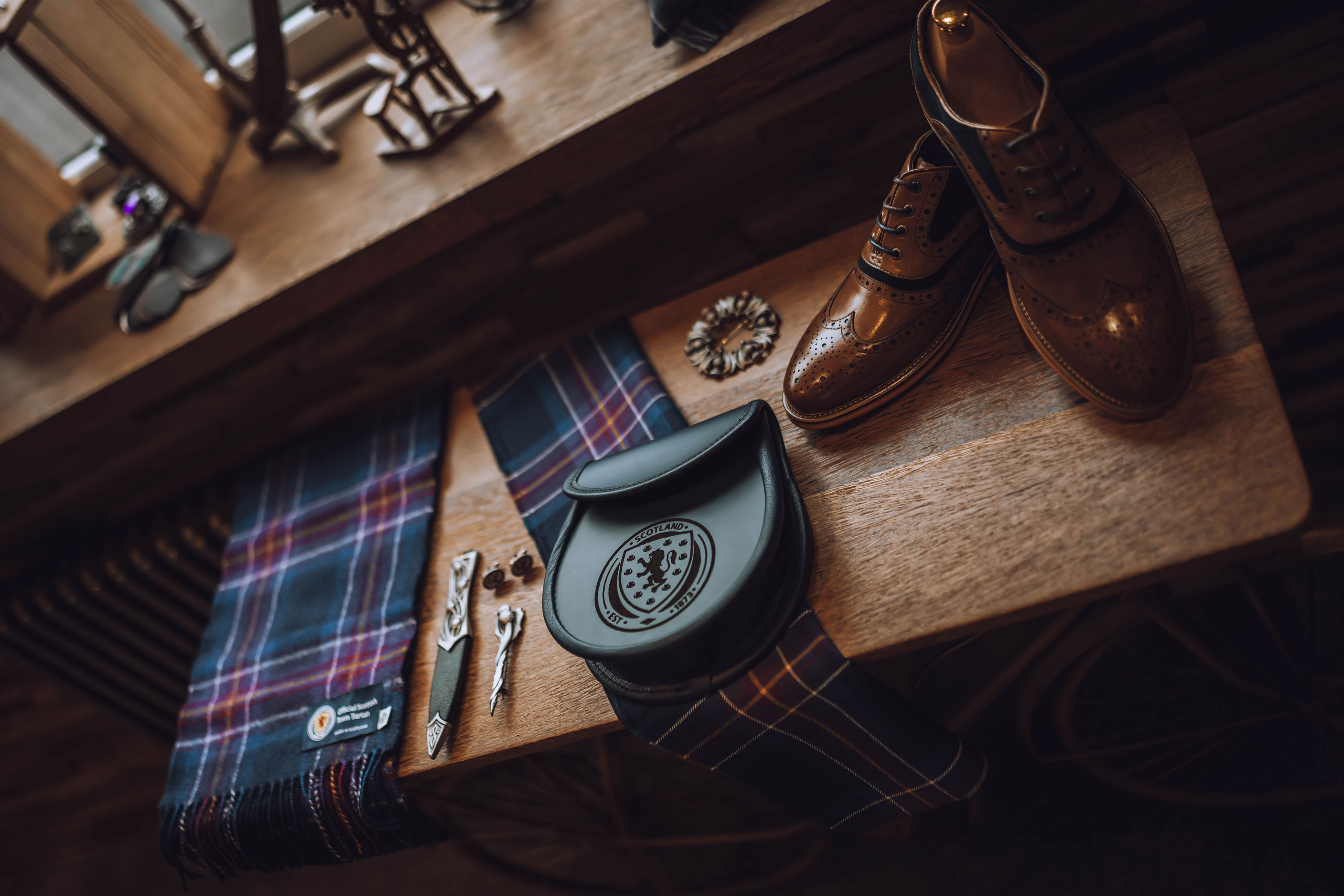 Our accessories are crafted using high-quality materials, including real leather sporrans and scarves and tammies made from authentic Scottish wool.