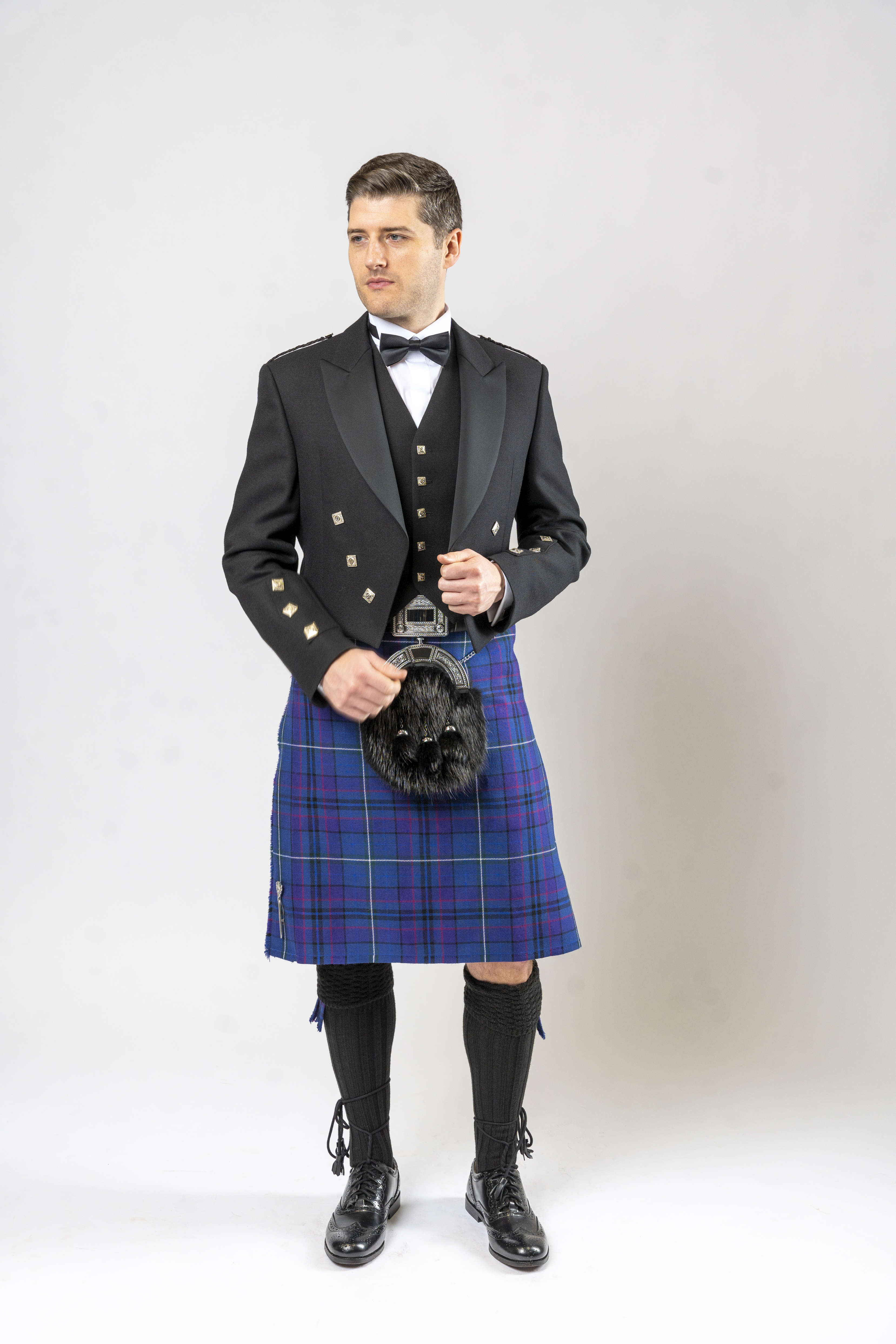 Expertly crafted from 100% wool black barathea cloth and proudly made in Scotland, this outfit combines traditional craftsmanship with contemporary refinement — a statement of style and heritage that lasts a lifetime.