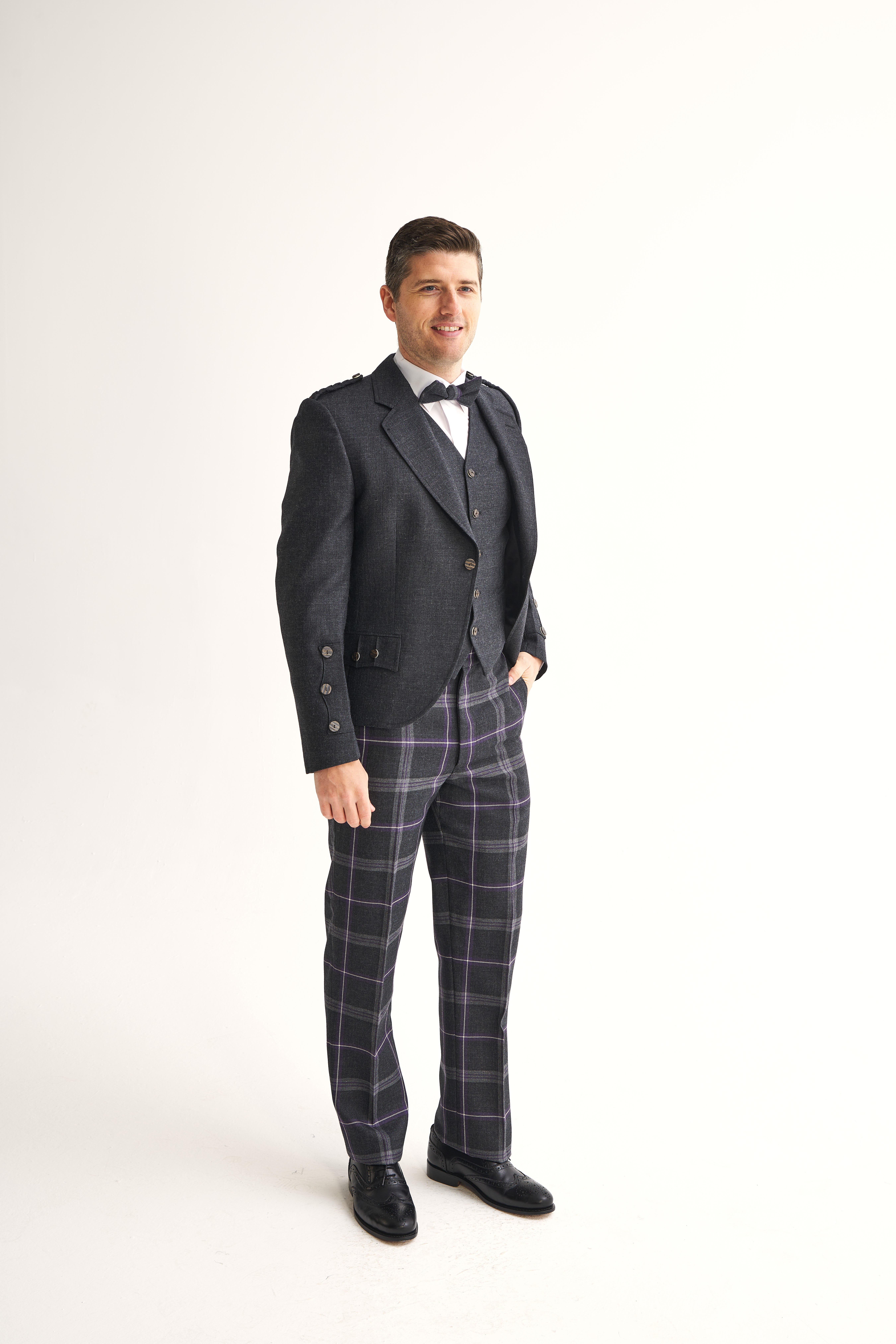Tartan Trews offer a refined alternative to the kilt, suitable for both formal and semi formal occasions. Expertly tailored, our Argyle Trews feature a 3" deep waistband with belt loops and are designed to sit higher on the waist, aligning perfectly with a kilt jacket and waistcoat for a cohesive Highland look.