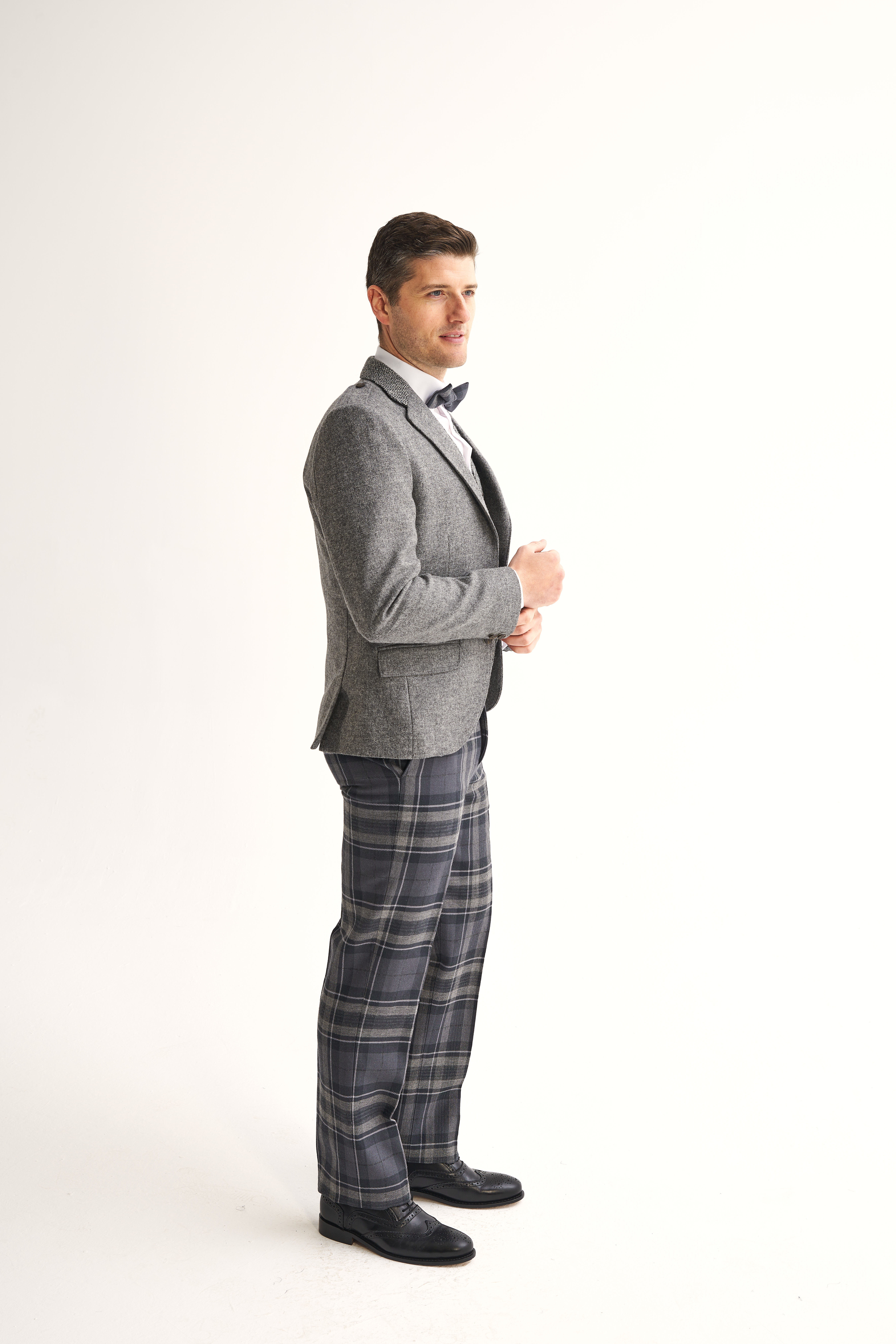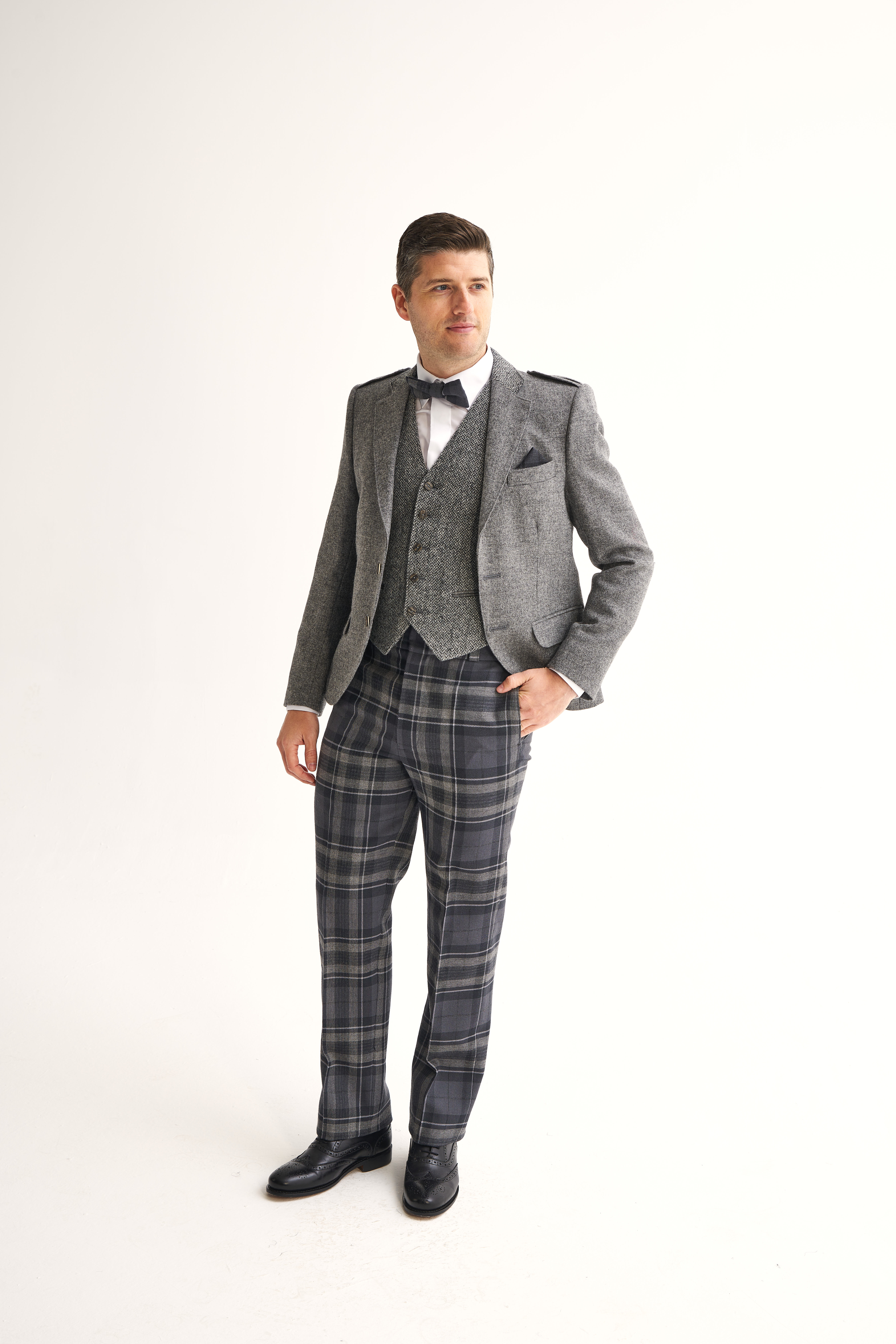 Tartan Trews offer a refined alternative to the kilt, suitable for both formal and semi formal occasions. Expertly tailored, our Argyle Trews feature a 3" deep waistband with belt loops and are designed to sit higher on the waist, aligning perfectly with a kilt jacket and waistcoat for a cohesive Highland look.