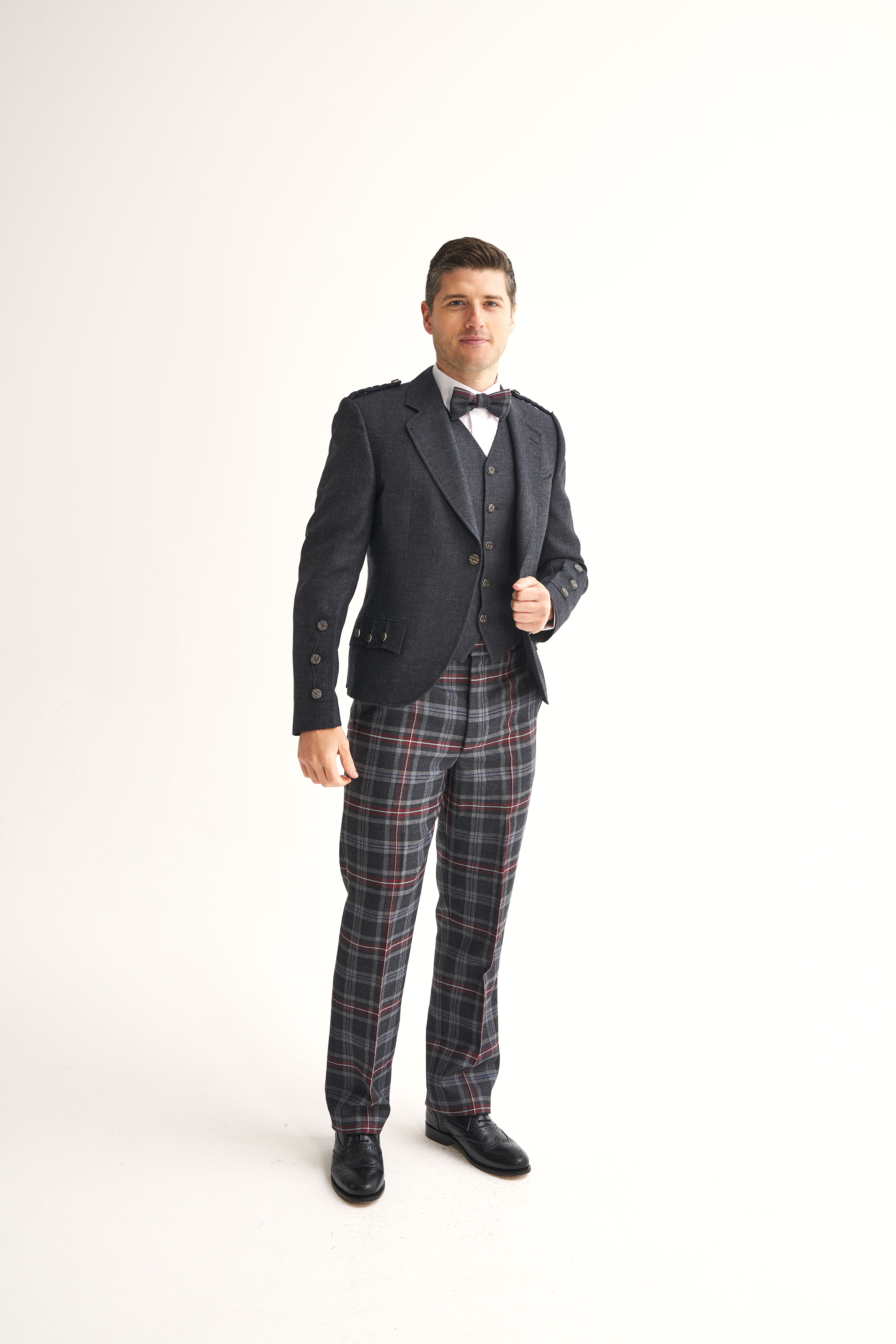 Tartan Trews offer a refined alternative to the kilt, suitable for both formal and semi formal occasions. Expertly tailored, our Argyle Trews feature a 3" deep waistband with belt loops and are designed to sit higher on the waist, aligning perfectly with a kilt jacket and waistcoat for a cohesive Highland look.