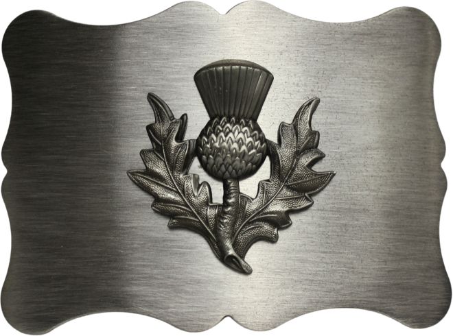 Presenting the Thistle Buckle with Mount – a striking accessory meticulously crafted in silver, showcasing the iconic thistle design. This distinguished buckle adds a touch of Highland charm and tradition to your attire. Elevate your ensemble with the Thistle, a unique piece that embodies Scottish heritage and timeless style in every detail.