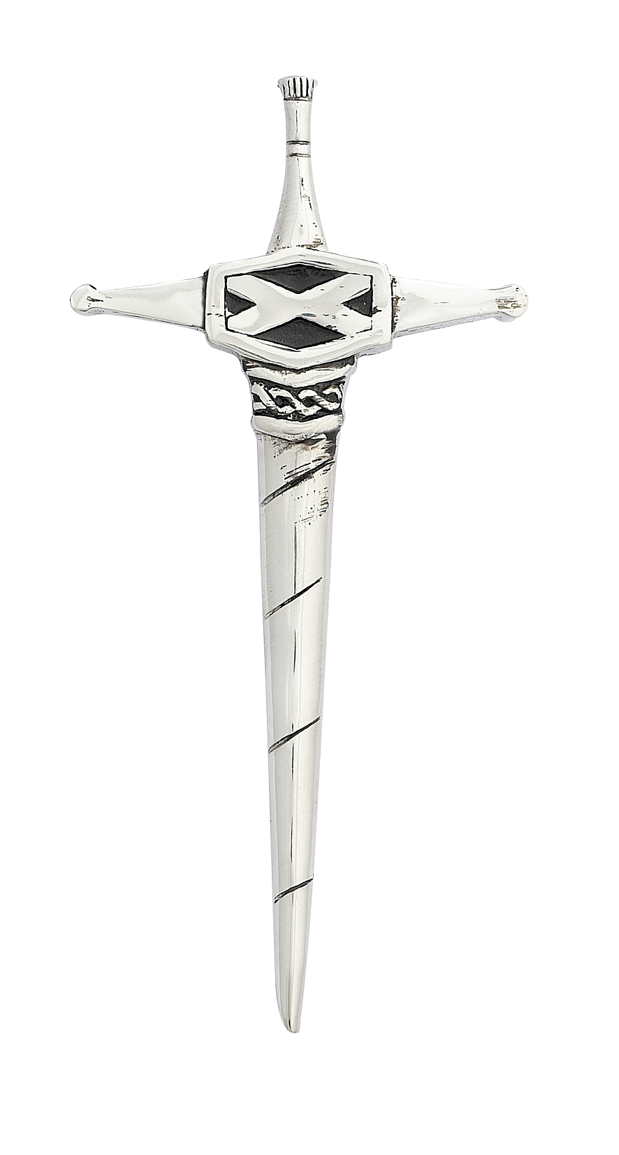 Celebrate your Scottish pride with this striking proud kilt pin, featuring the iconic Saltire set within a sleek chrome cross. A perfect finishing touch, this pin elevates any Highland dress ensemble with timeless style and national pride.