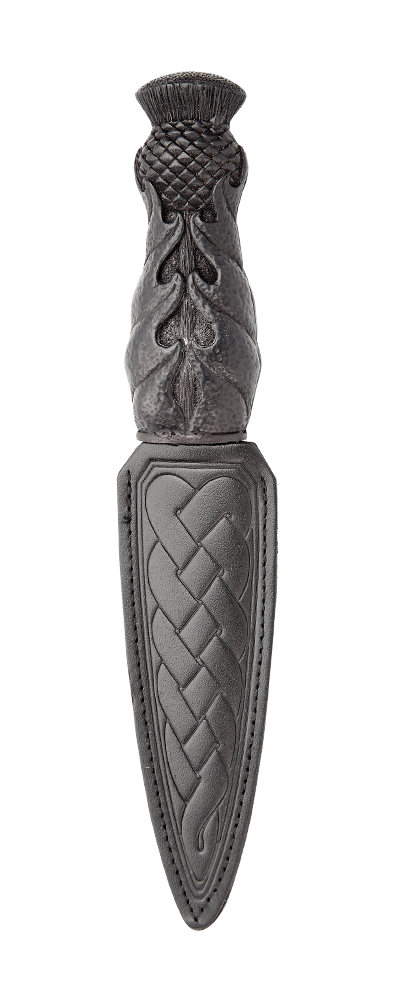 Featuring a genuine stainless steel blade paired with a hand-stained resin handle, this sgian dubh is a perfect blend of heritage craftsmanship and refined style. Complete with a genuine black leather sheath, it is an essential accessory for traditional Scottish Highland dress.
