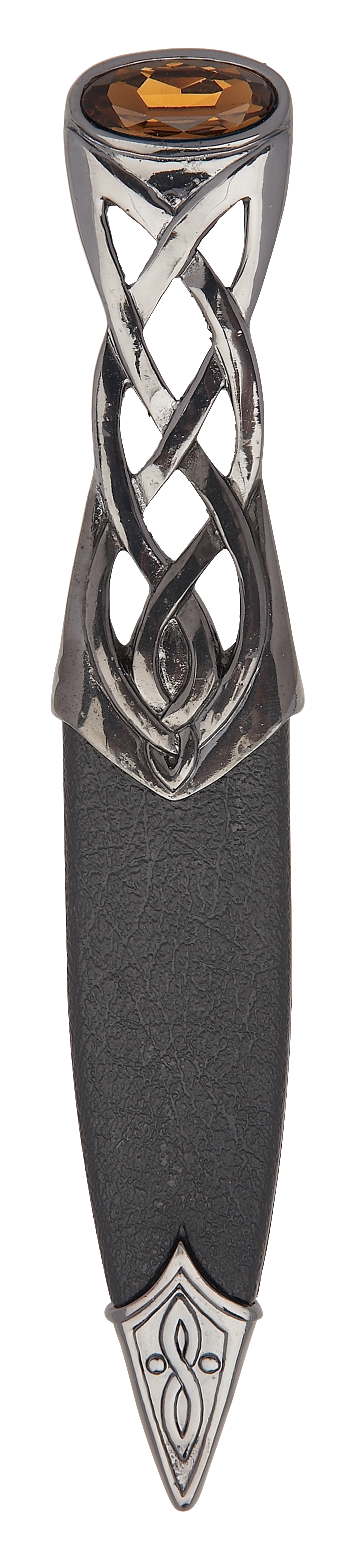 Expertly crafted from antique Celtic pewter, this sgian dubh features a striking coloured stone top and a durable stainless steel blade, combining heritage craftsmanship with functional elegance.