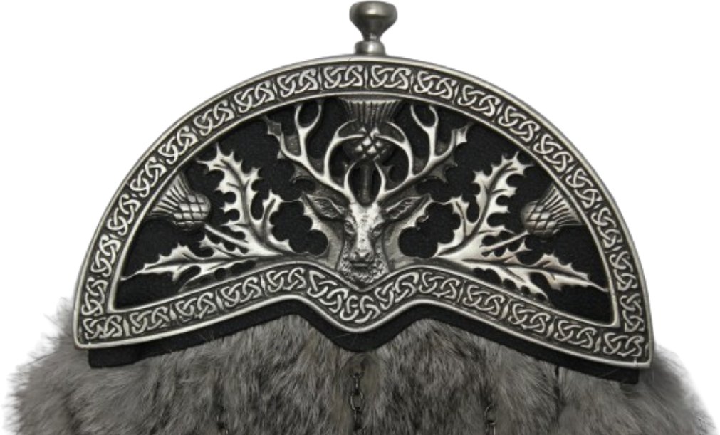 Introducing the Antique Thistle and Stag Grey Chinchilla Rabbit Dress Sporran—an elegant accessory blending tradition with sophistication. Featuring an antique finish and adorned with thistle and stag motifs, this sporran showcases luxurious grey chinchilla rabbit fur, adding a touch of refinement to your dress attire. Embrace the unique charm and craftsmanship of this exquisite piece.