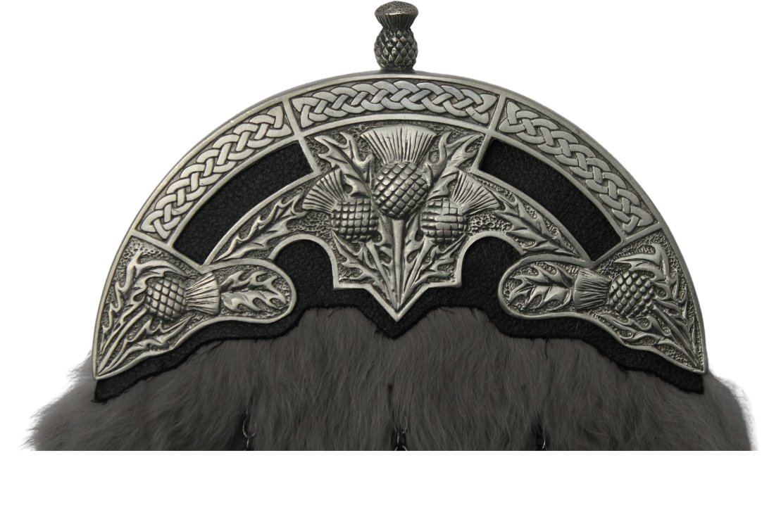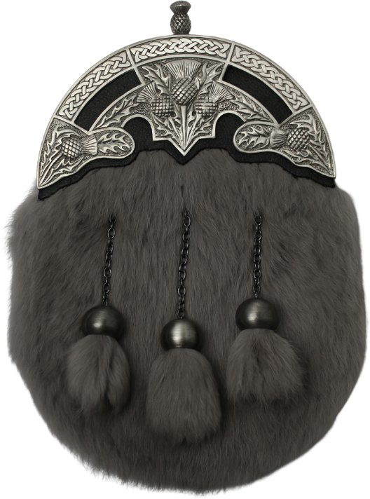 Introducing the Antique Stag and Thistle Grey Rabbit Sporran—an elegant accessory seamlessly blending tradition with sophistication. Crafted with an antique finish, this sporran features luxurious grey rabbit fur and is adorned with iconic stag and thistle motifs. Elevate your dress attire with the unique charm of this exquisite sporran, a perfect complement to formal Highland dress.