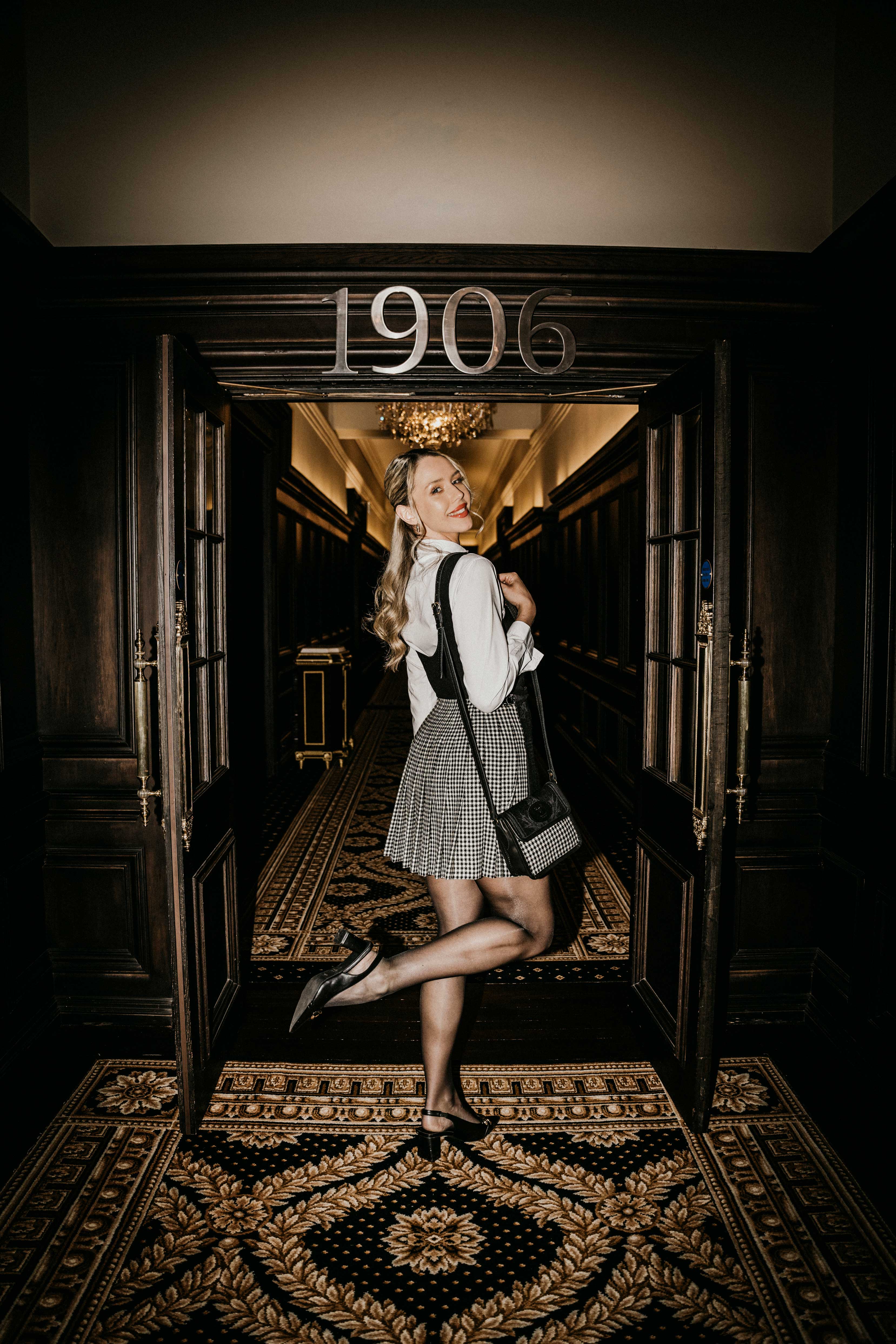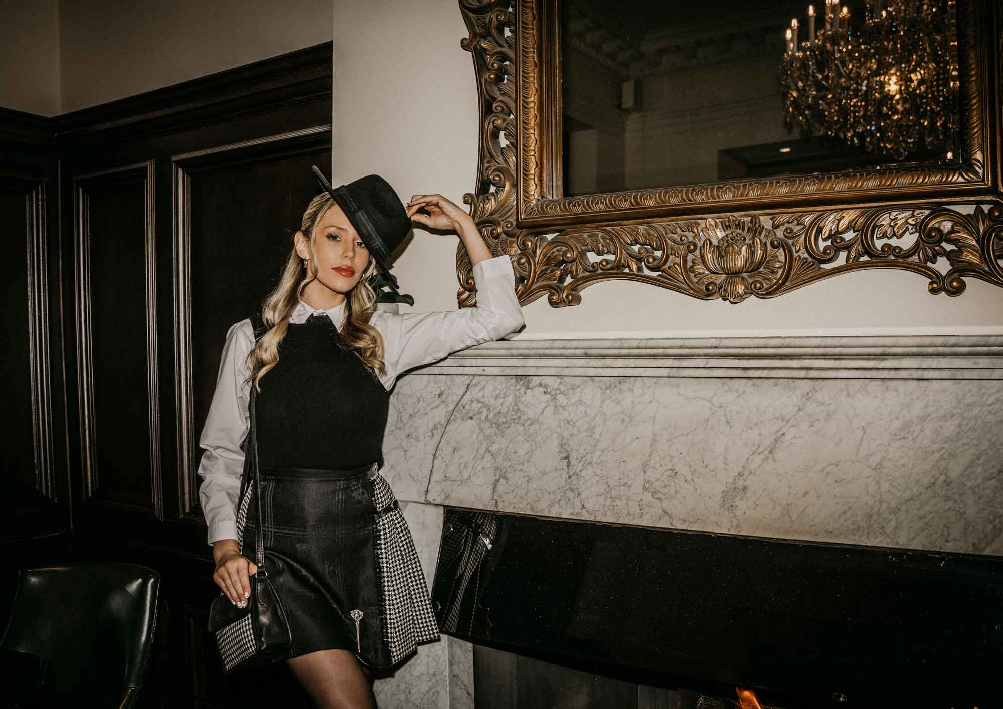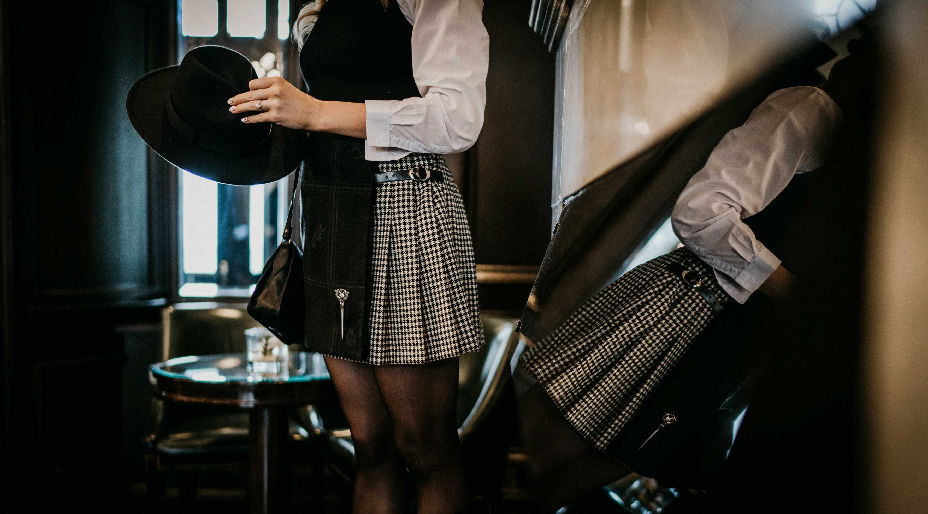 Tailored in a chic mini style, this kilt is crafted in a pleat-to-stripe finish, where each pleat is precisely arranged to highlight a consistent vertical stripe. The result is a sharp, uniform silhouette that flows seamlessly around the skirt, combining traditional craftsmanship with contemporary femininity.