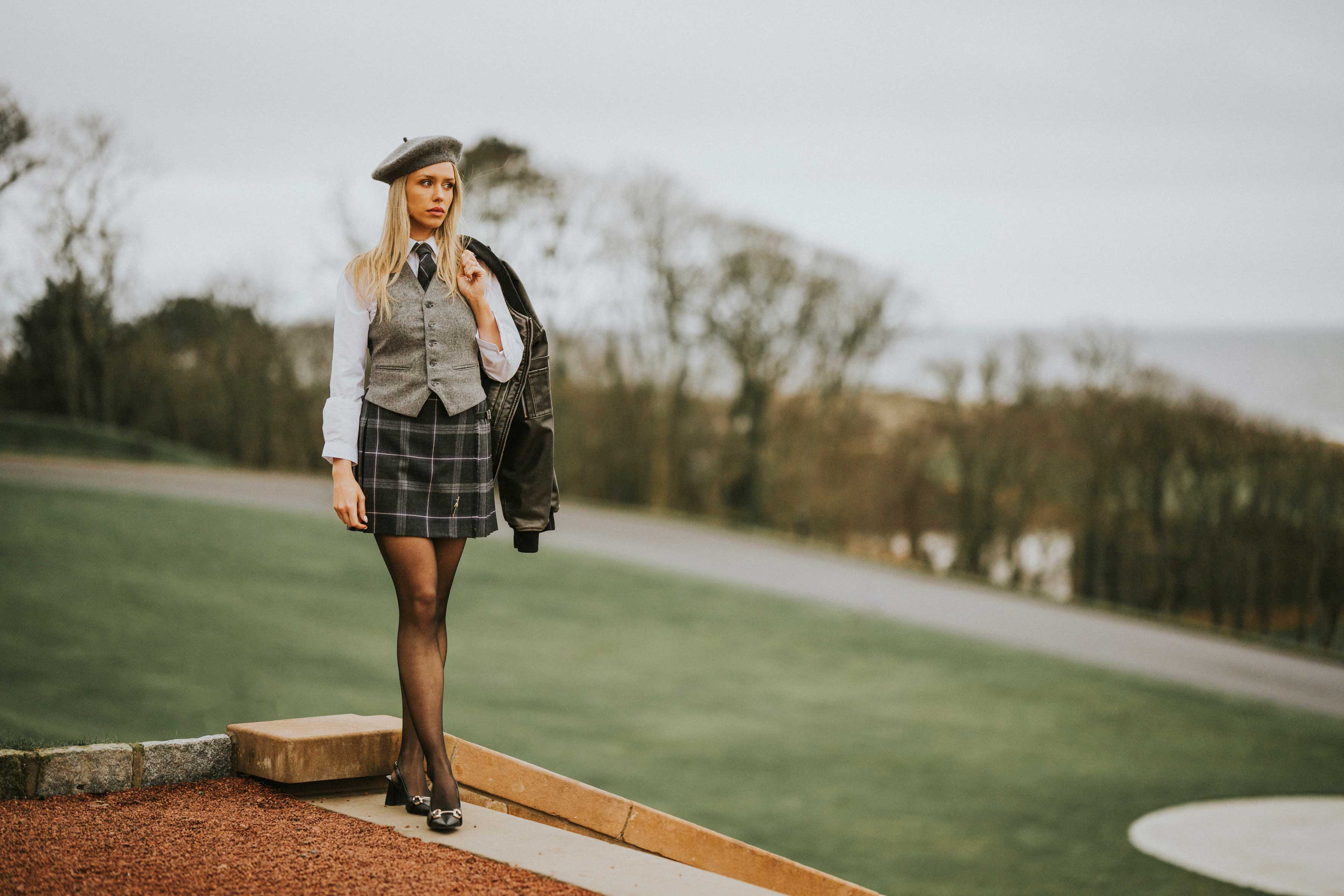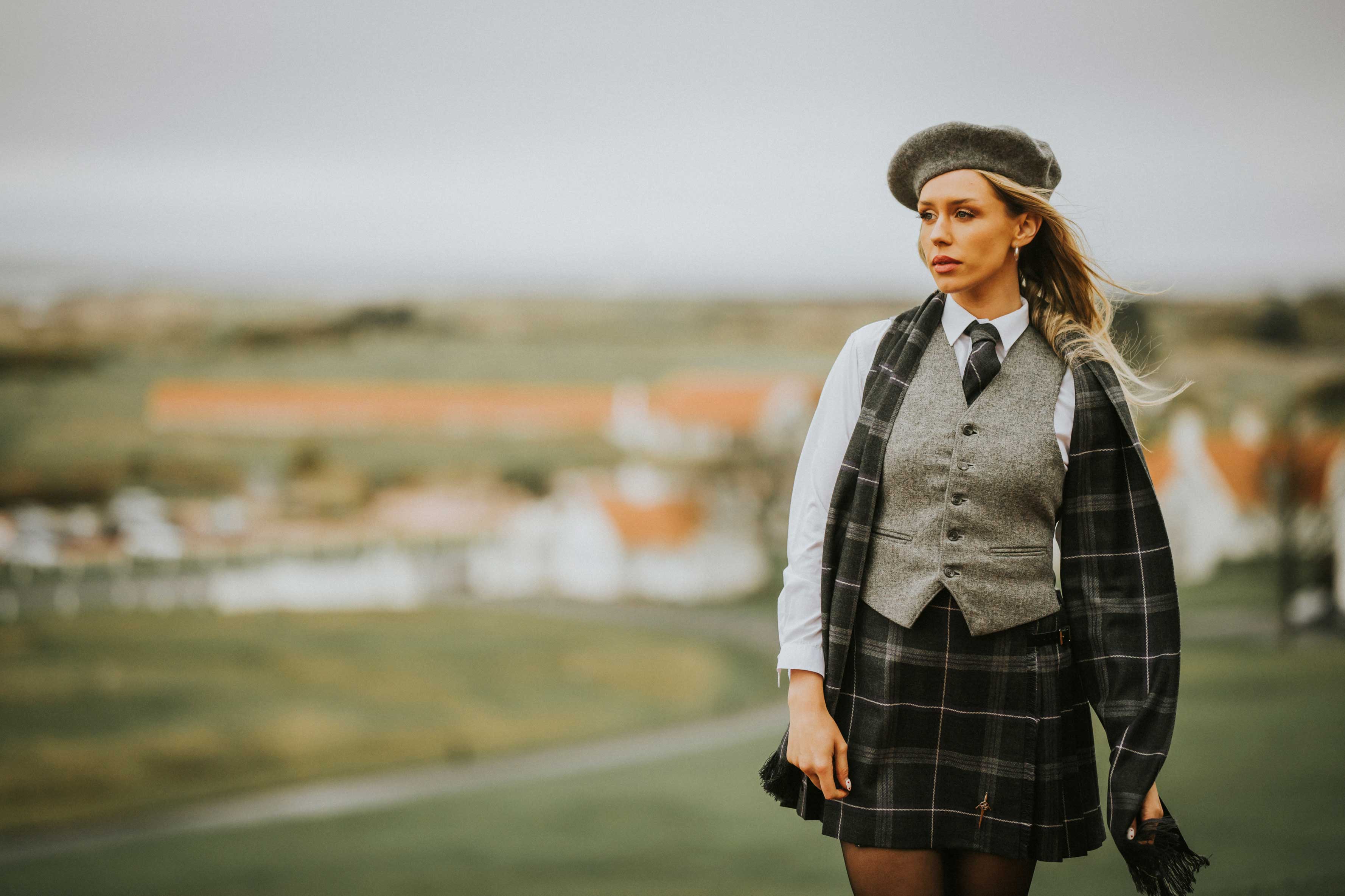 Styled in a flattering mini kilt, this design offers a modern take on tradition. With pattern-matched pleating, the tartan flows seamlessly around the skirt, creating a graceful and balanced silhouette that’s versatile enough for any occasion.