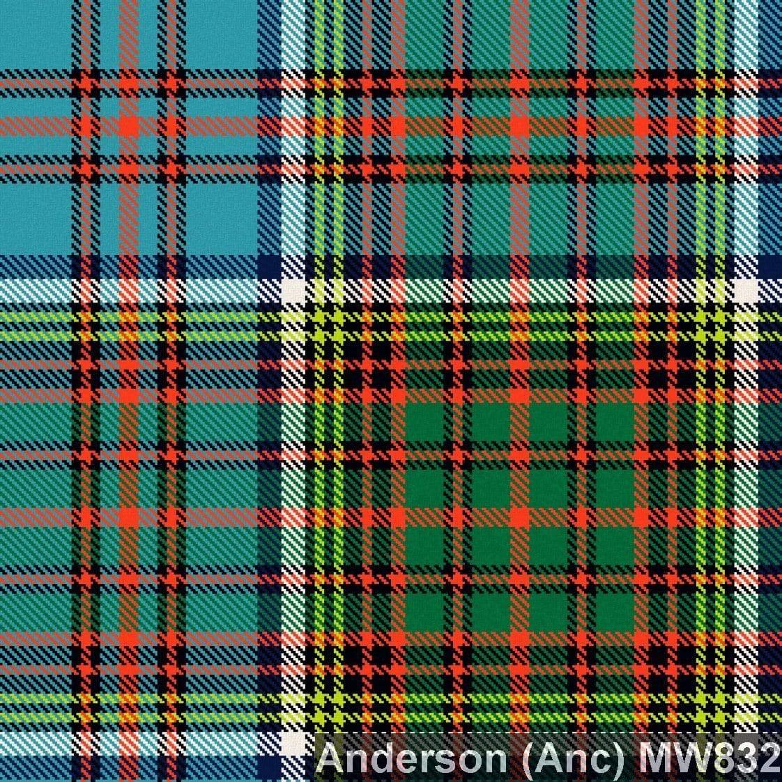 Armstrong Ancient Heavyweight Tartan features a vibrant blue and green base with an orange overcheck. Woven from 100% British Wool, this tartan is perfect for made-to-measure products, accessories, upholstery, and craft projects.