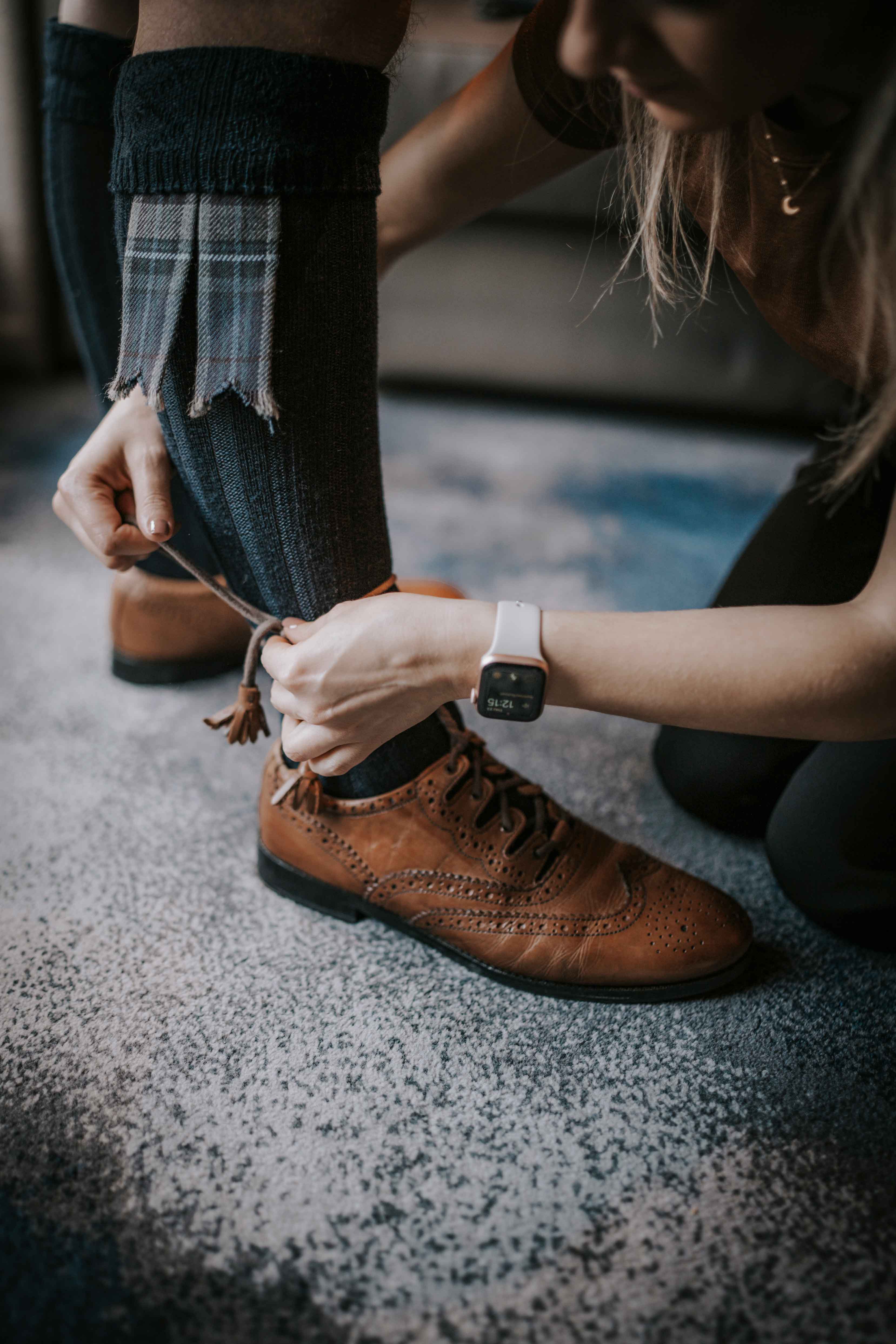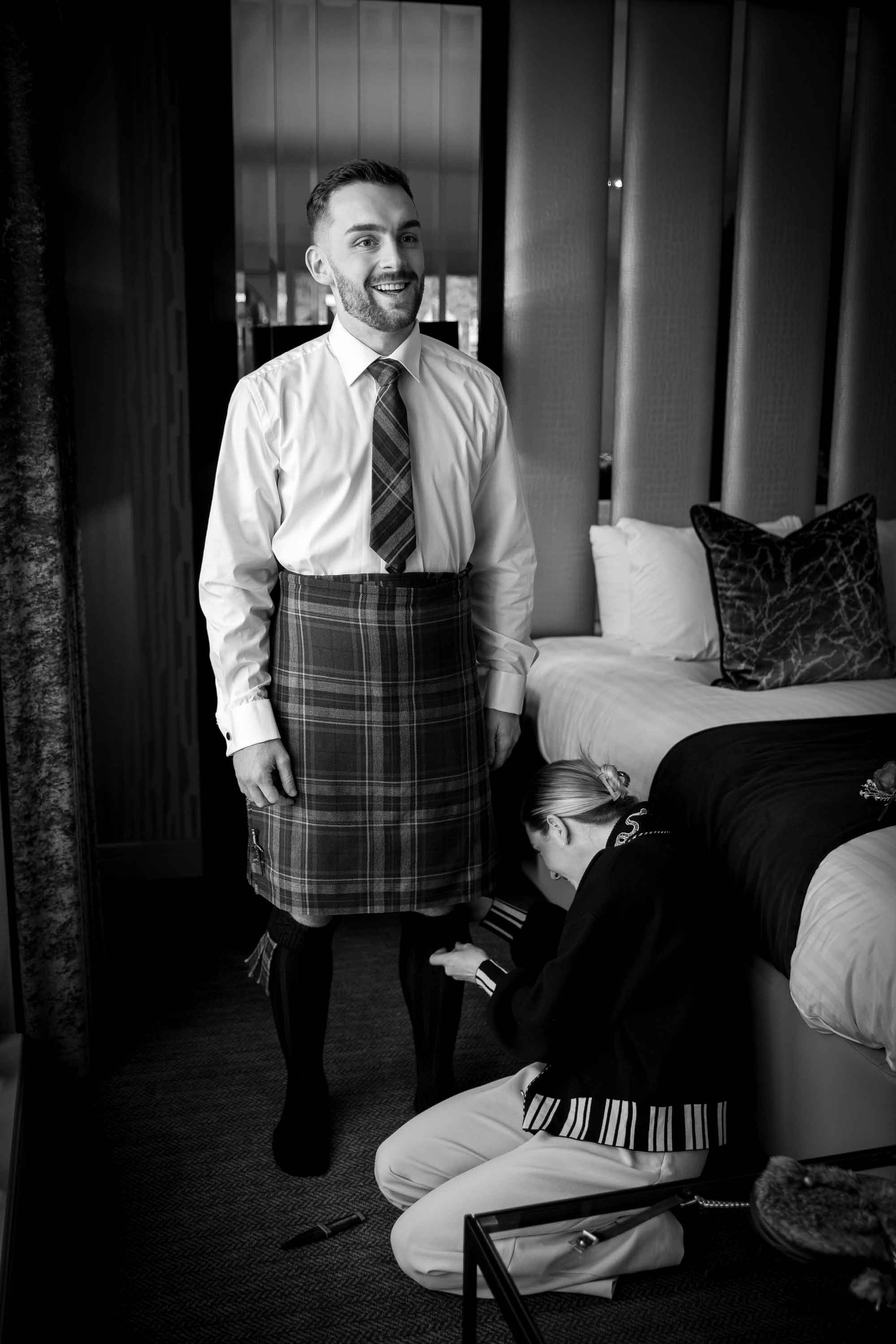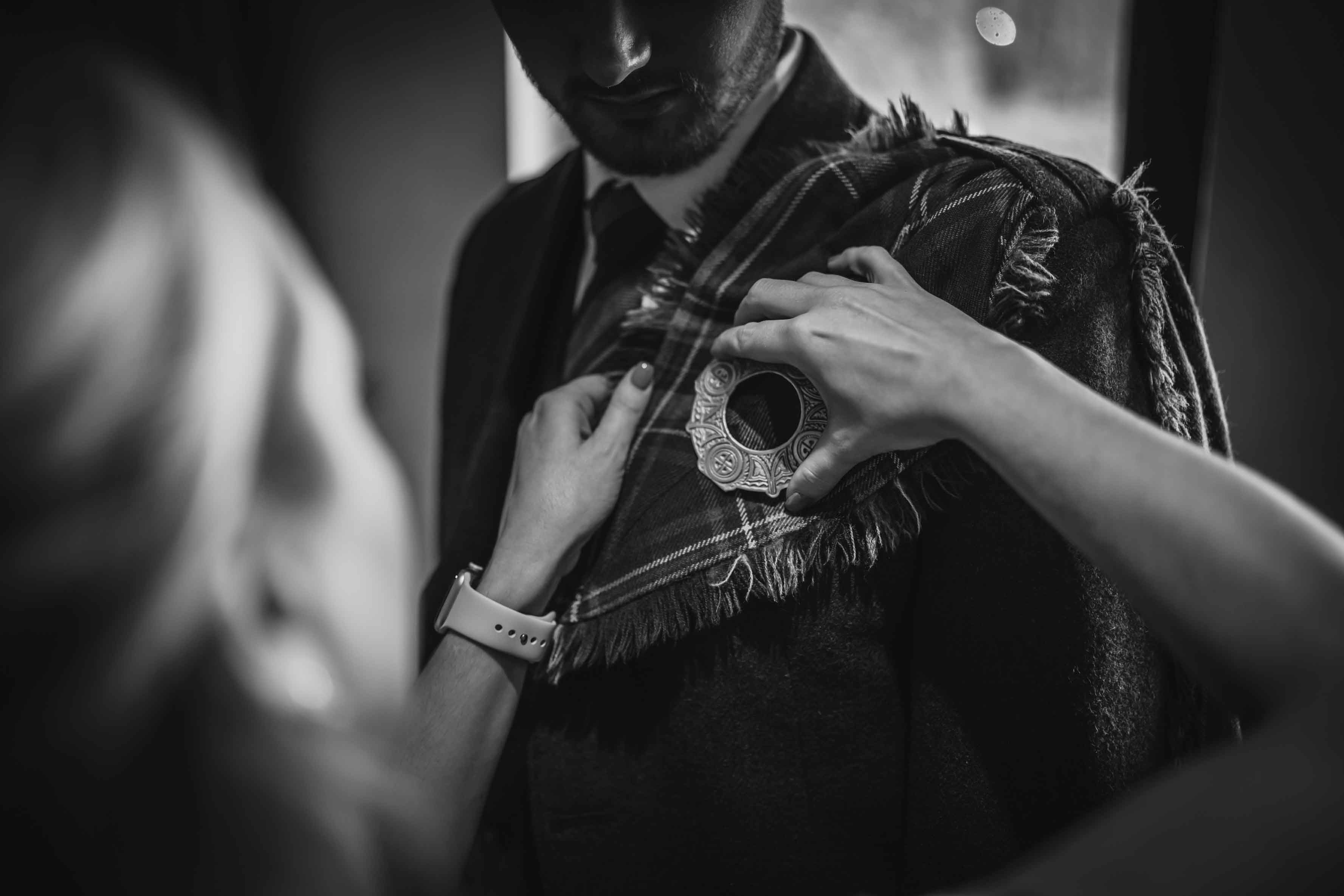 - Check all kilts, jackets, ties, shirts, and accessories are fitted correctly